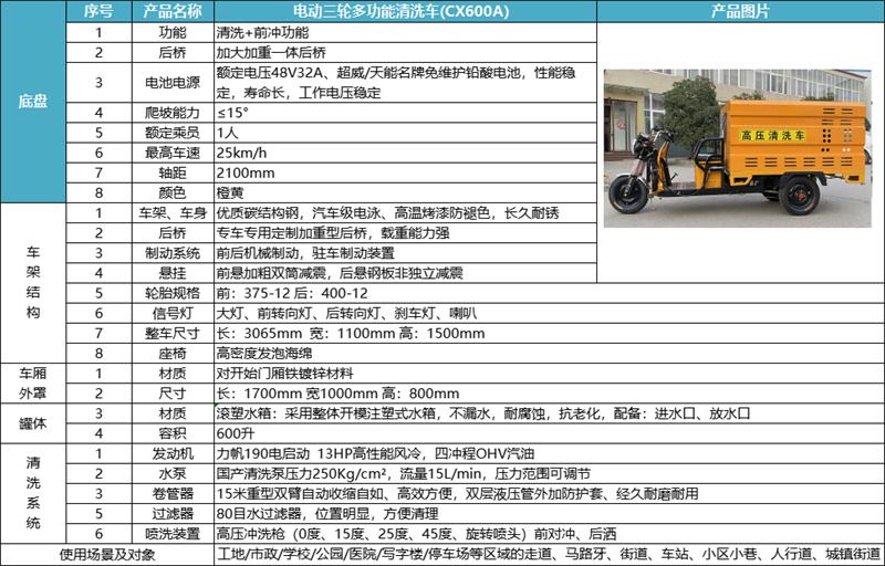 淮南电动三轮高压冲洗车CX600