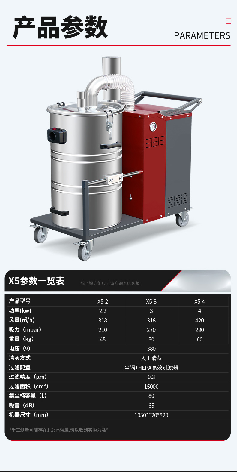 淮南坦洁380V双桶不锈钢工业吸尘器X7系列