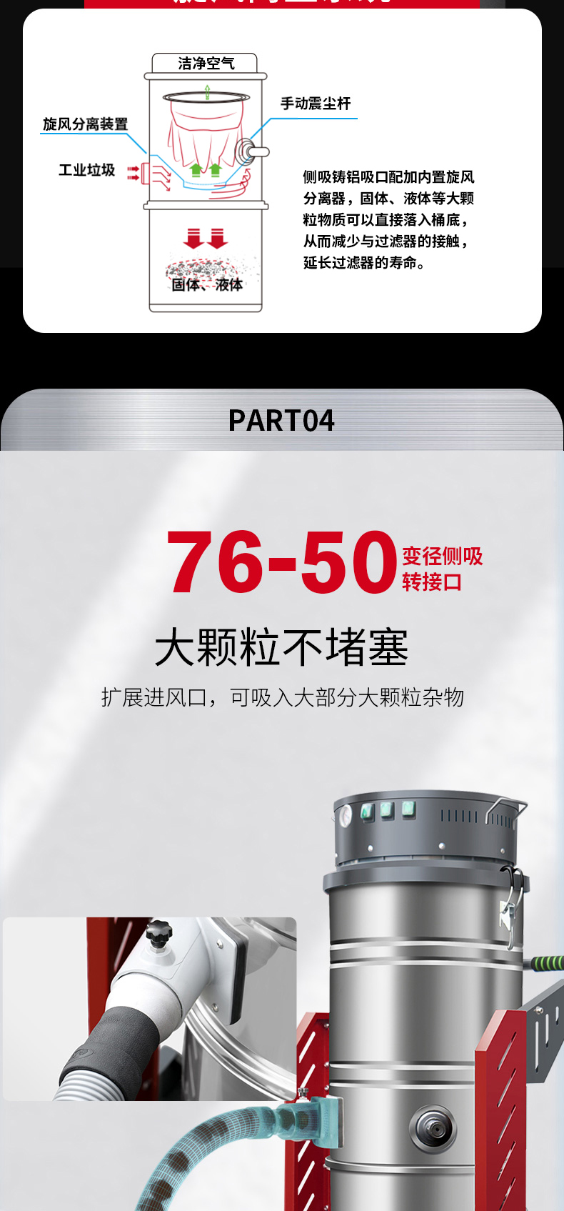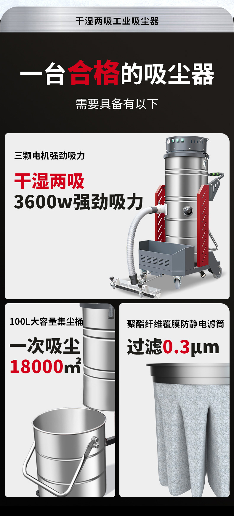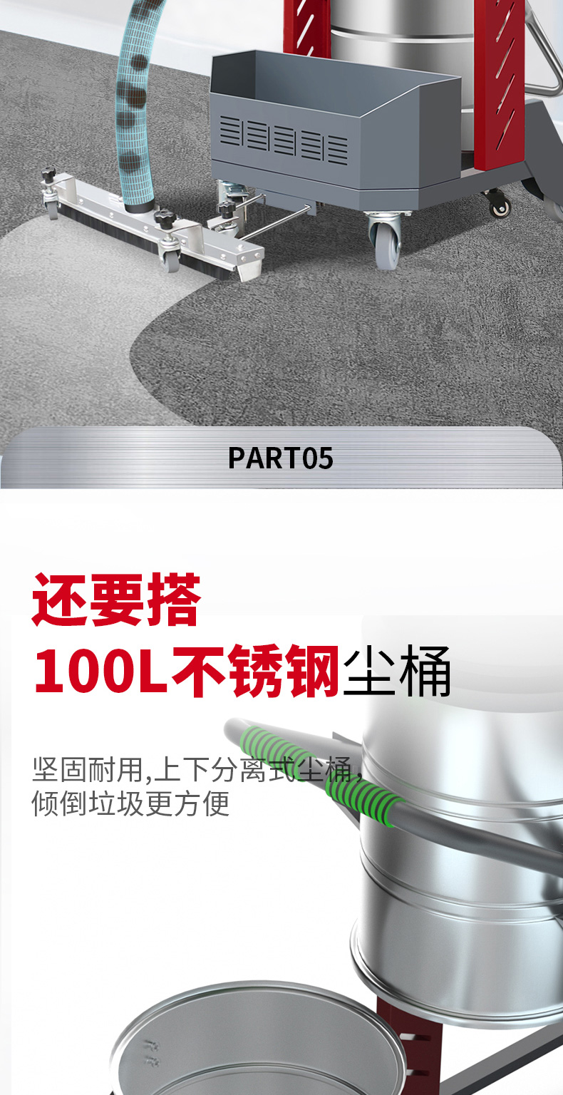 淮南坦洁380V双桶不锈钢工业吸尘器X7系列