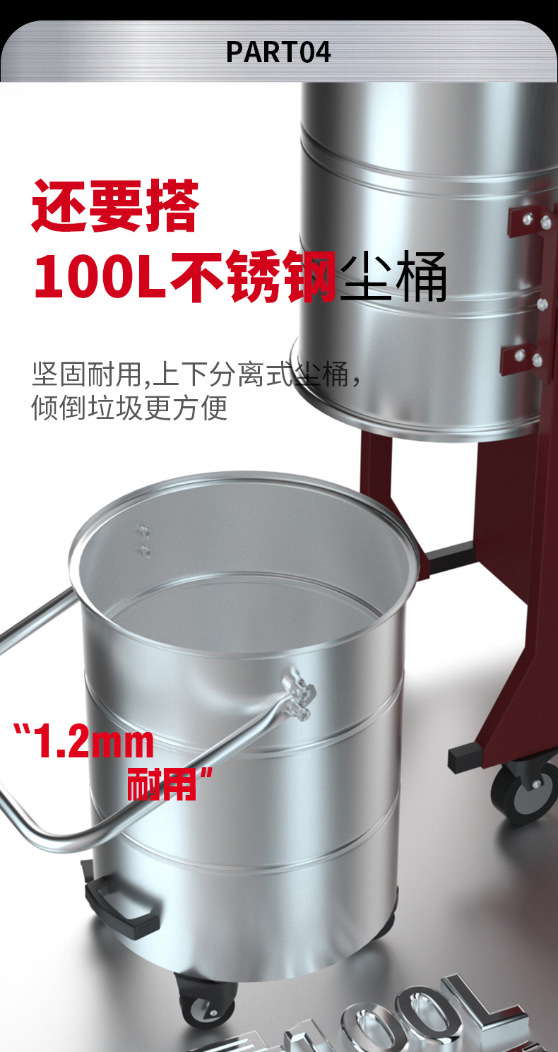 淮南坦洁380V双桶不锈钢工业吸尘器X7系列